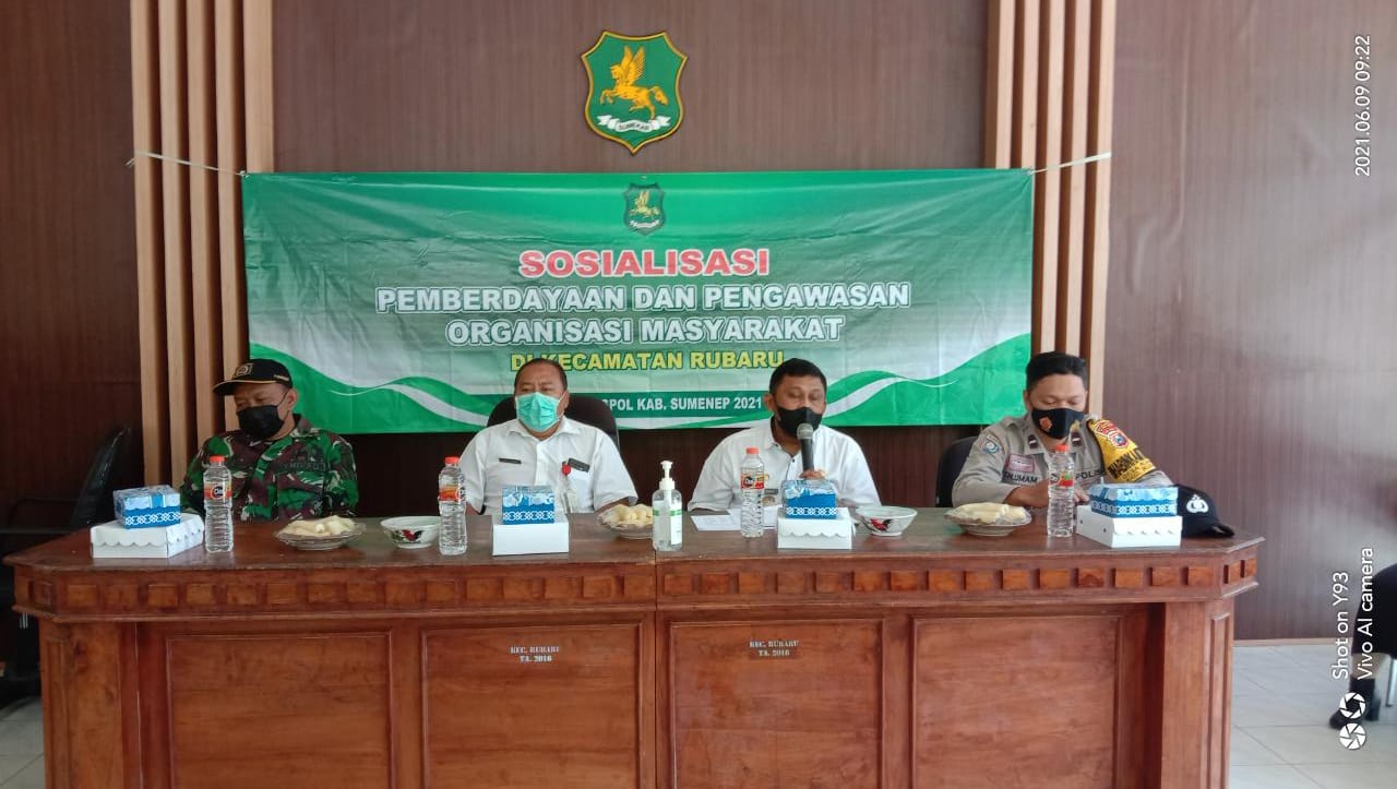 Badan Kesatuan Bangsa dan Politik (Bakesbangpol) Kabupaten Sumenep melaksanakan Sosialisasi Pemberdayaan dan Pengawasan Organisasi Masyarakat, bertempat di Pendopo Kecamatan Rubaru, Rabu (09/06/2021).