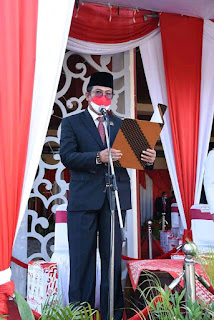 Upacara memperingati Hari Kemerdekaan Republik Indonesia dilaksanakan dilapangan kantor PEMKAB Sumenep dengan menerapkan protokol kesehatan dengan jumlah undangan yang terbatas, tetapi tetap penuh khidmat di halaman Kantor Bupati Sumenep, Selasa (17/8/2020).