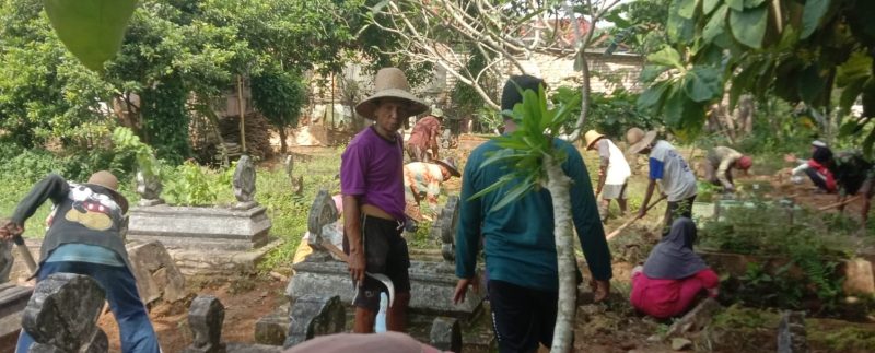 Kegiatan tersebut menjadi tradisi tahunan yang sarat makna religius. Sejak pagi hari, masyarakat tampak bergotong royong membersihkan area pemakaman desa, mencabut rumput liar, merapikan nisan, serta menyapu lingkungan sekitar makam agar tampak bersih dan tertata.